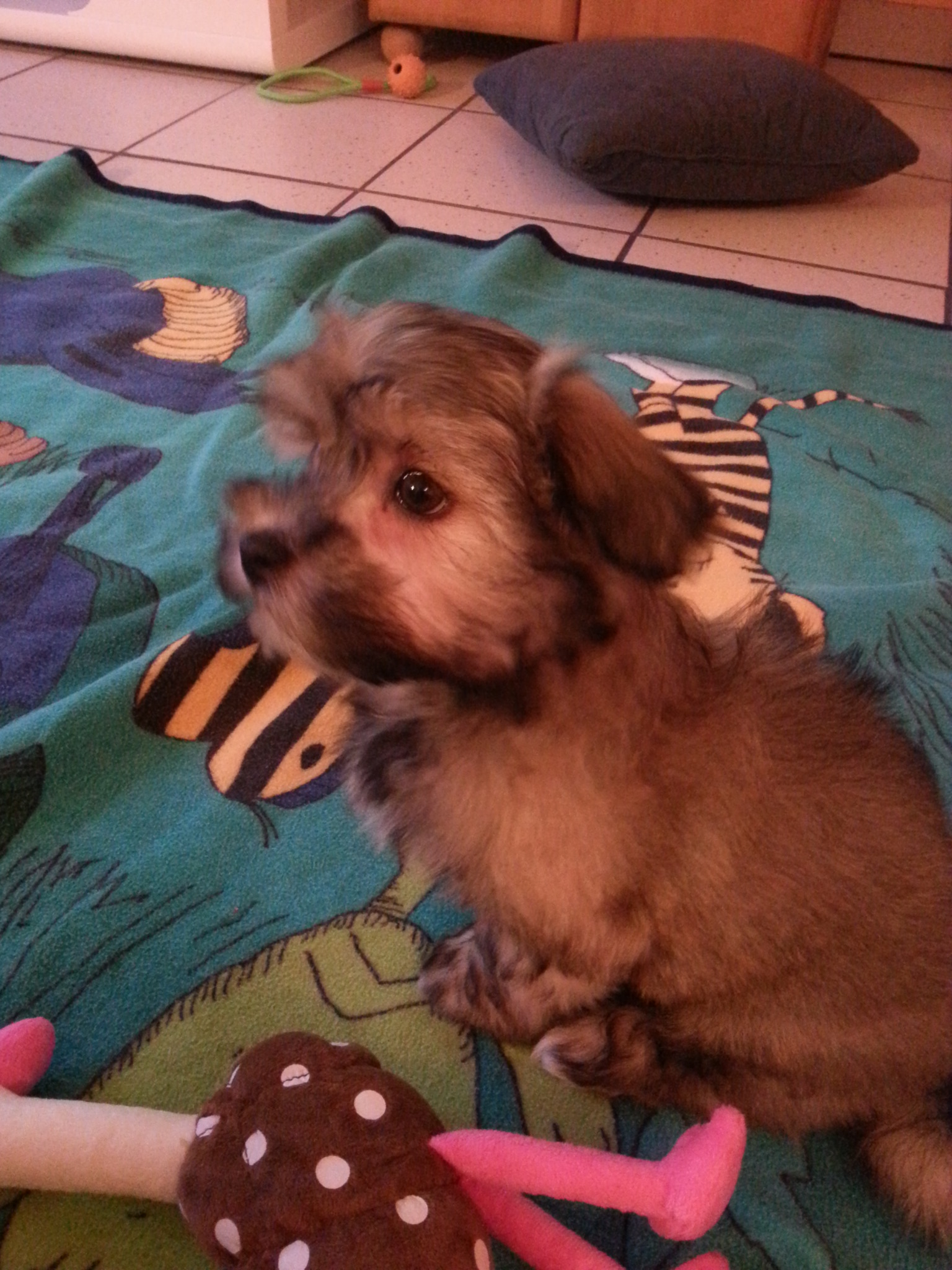 Seit knapp einer Woche ist unsere Familie nun endlich komplett, denn jetzt ist Joshi bei uns eingezogen, ein elf Wochen alter Havaneser–Malteser-Mix-Rüde.